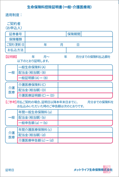 生命保険料控除申告書は、生命保険料控除証明書の【ご参考】欄にある以下の金額を記入してください。